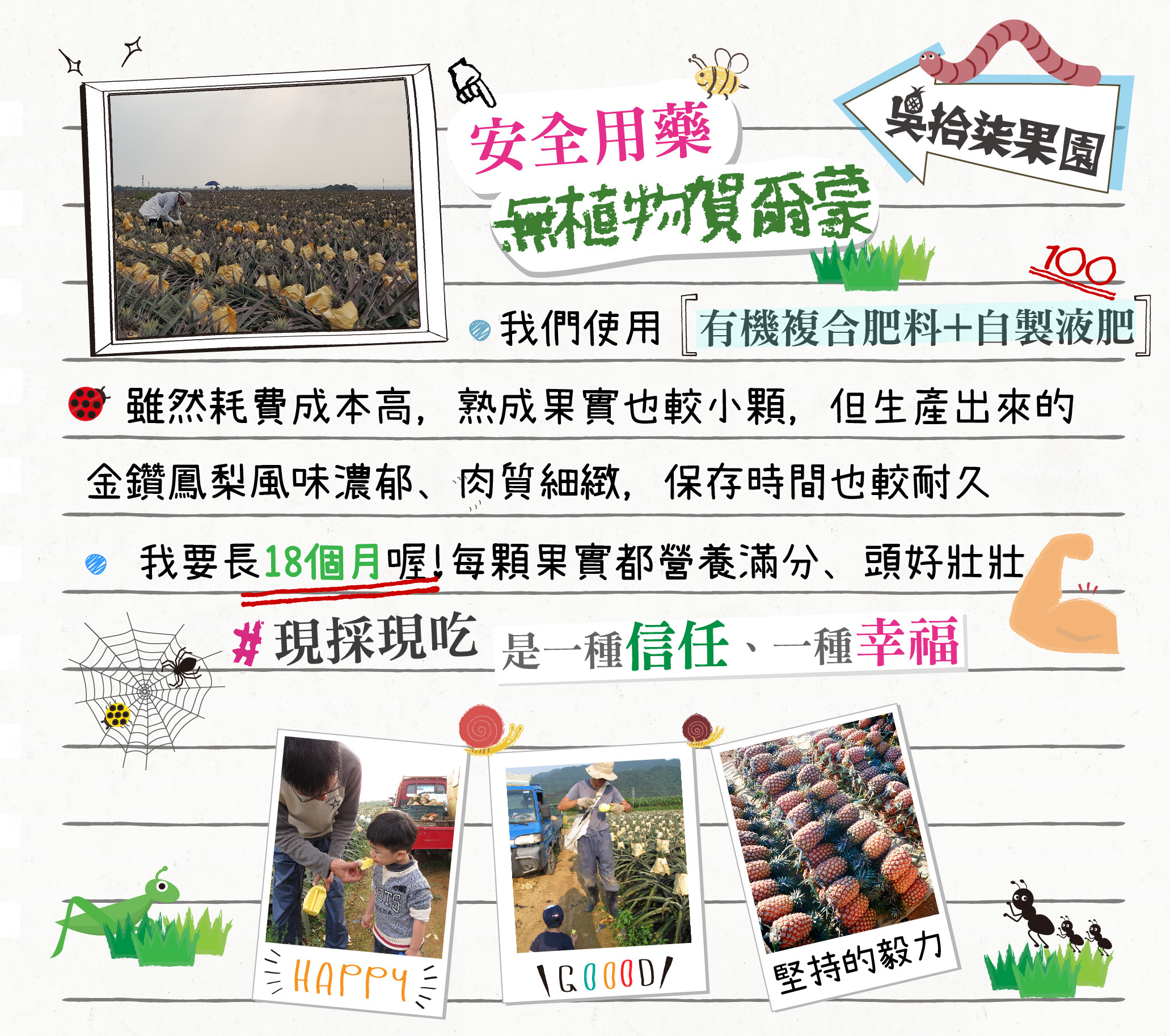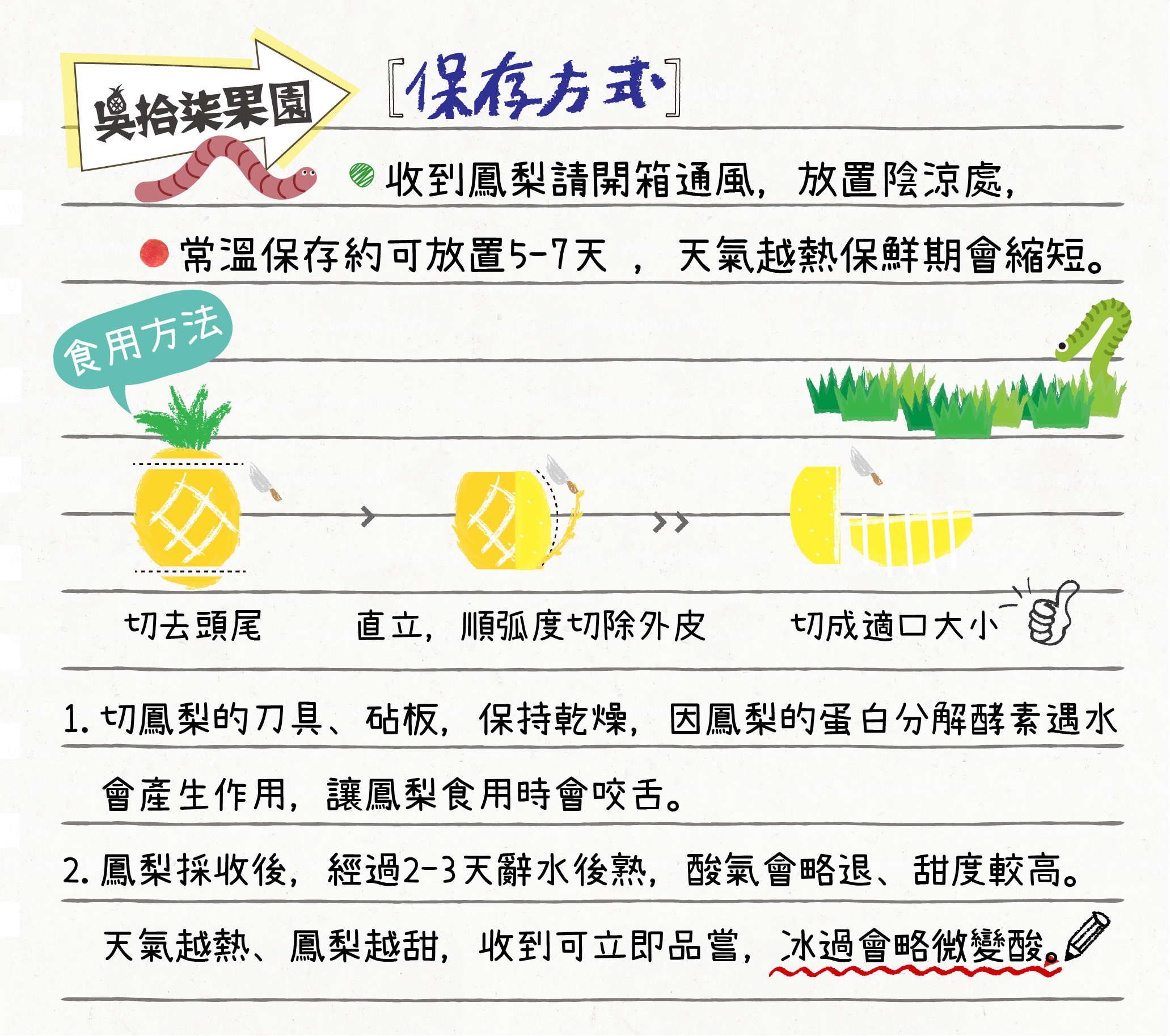 🍍吳拾柒的鳳梨果肉香甜細緻不咬舌、鳳梨心不要削掉(很好吃) ,鳳梨皮用水洗淨也可以煮鳳梨茶來喝(超好喝)